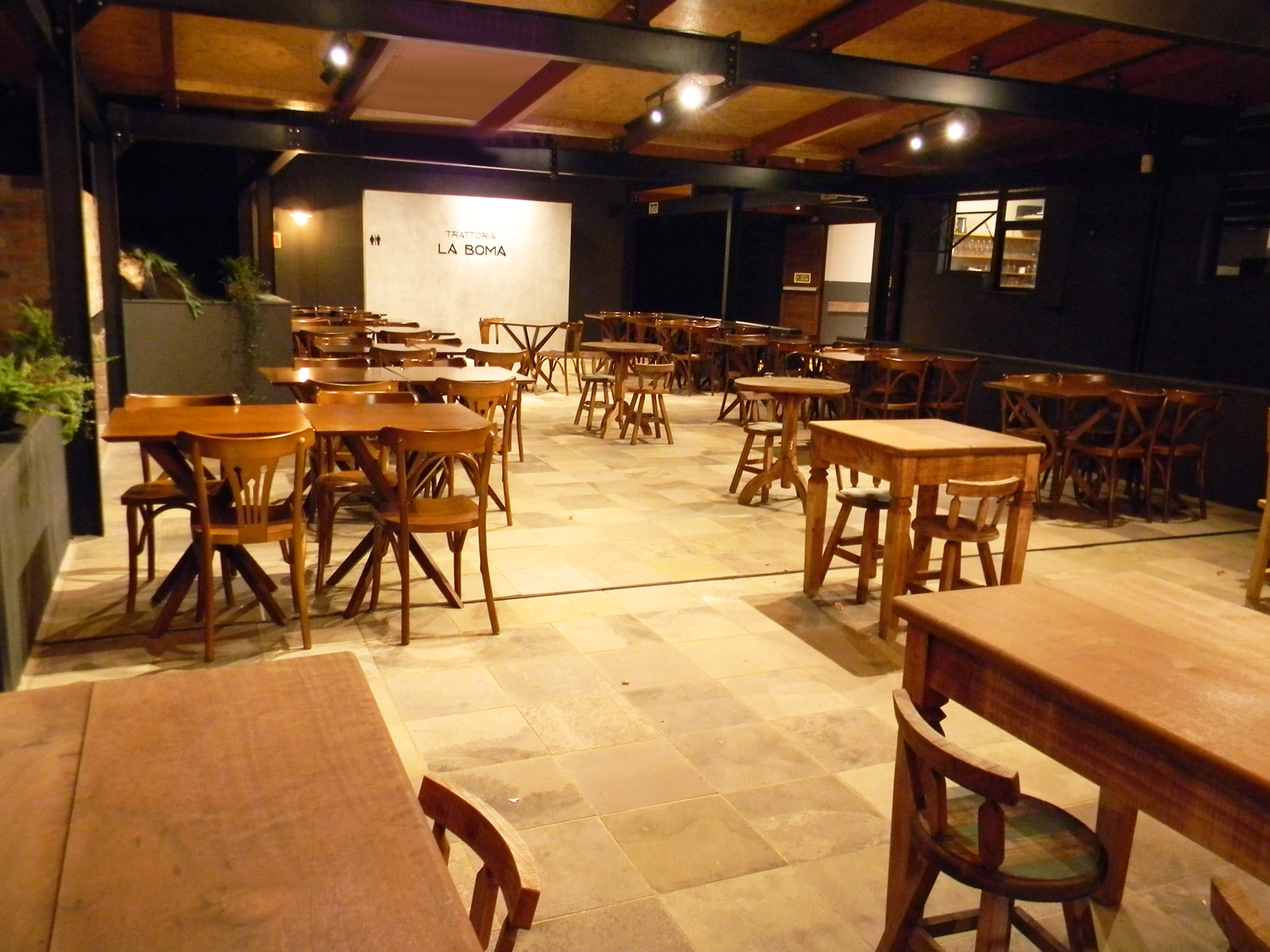 A Trattoria La Boma acredita que estar à mesa é um dos momentos mais importantes e prazerosos da vida, por isso dispomos de um ambiente aconchegante e acolhedor para perfectibilizar os momentos especiais, seja no almoço em família, no happy hour com os amigos, no jantar romântico ou no evento empresarial.